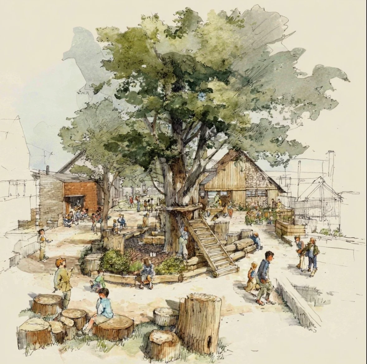 Progressive education is rooted in the belief that children learn best through experience. Our grounds will embody this philosophy by weaving flexibility, materiality, and nature together in ways that invite meaningful, lasting engagement. These spaces will be designed to support learners at different developmental stages, encourage collaboration, and create opportunities for authentic connection with one another, with adults, and with the wider community.